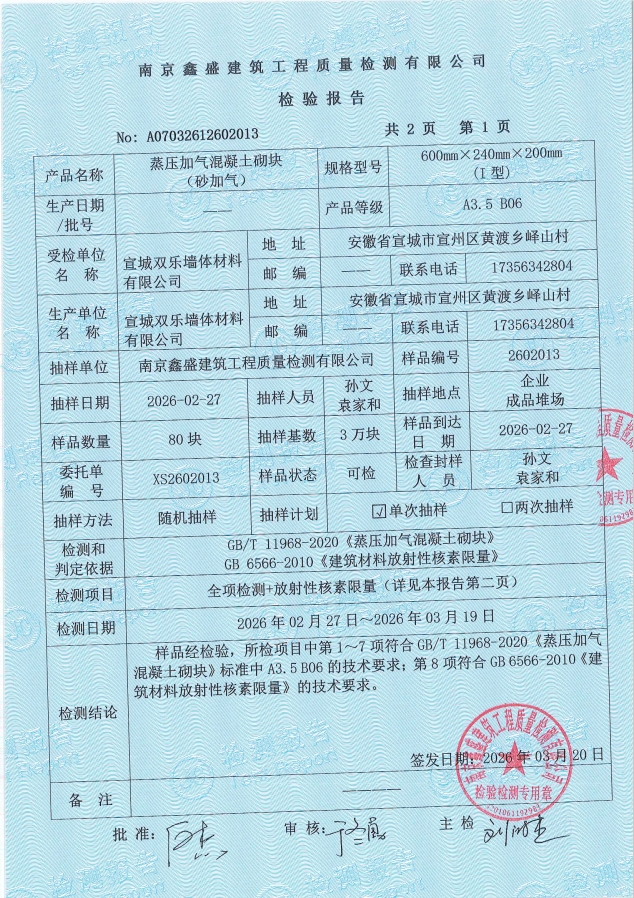 江苏检测报告A3.0B06砂(20*24)